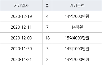 국토교통부 실거래가 공개시스템에 따르면 지난 2020년 12월 19일 서울특별시 중구 신당동 신당남산타운(분양) 4층 전용면적 114㎡형이 14억7000만원에 거래됐다. 지난 2020년 12월 19일 같은 면적형인 4층 물건이 14억7000만원에 실거래된 것과 비교해 같은 가격이다.
