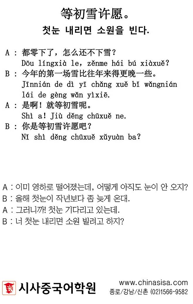 [시사중국어학원의 리얼 중국어 회화] 첫눈 내리면 소원을 빈다.
