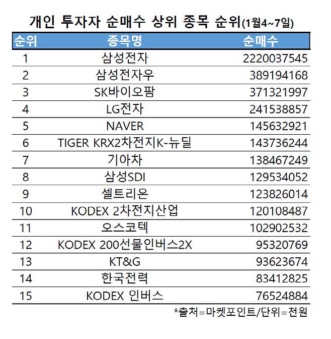 예를 들어 폐장일인 지난달 30일 개인은 KODEX 200선물인버스2X를 421억원 순매수했다.