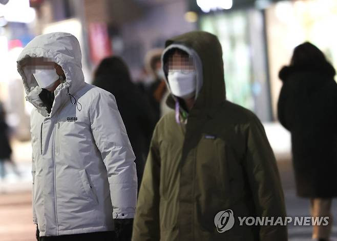 (서울=연합뉴스) 이지은 기자 = 북극발 한파 영향으로 강추위가 이어진 7일 오후 서울 광화문 사거리에서 시민들이 횡단보도를 건너기 위해 기다리고 있다. 기상청은 8일 추위가 절정을 이룰 것으로 보인다고 밝혔다. 2021.1.7
