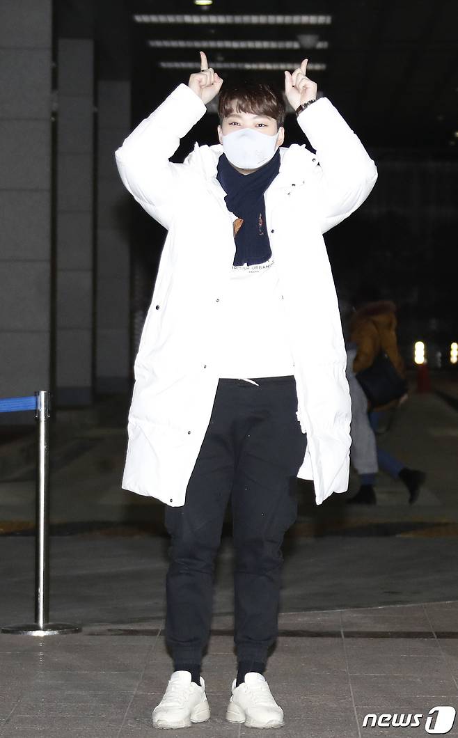 (고양=뉴스1) 권현진 기자 = '앳된 황소' 김경민이 7일 경기도 고양시 일산 MBC드림센터에서 열린 MBC every1 예능 프로그램 '비디오스타' 녹화를 위해 들어서며 인사를 하고 있다. 2021.1.7/뉴스1