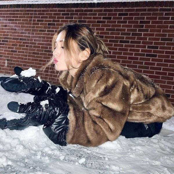 이 사진에서 전소미는 하얀 눈밭을 만나 즐거워하는 모습이 담겼다.