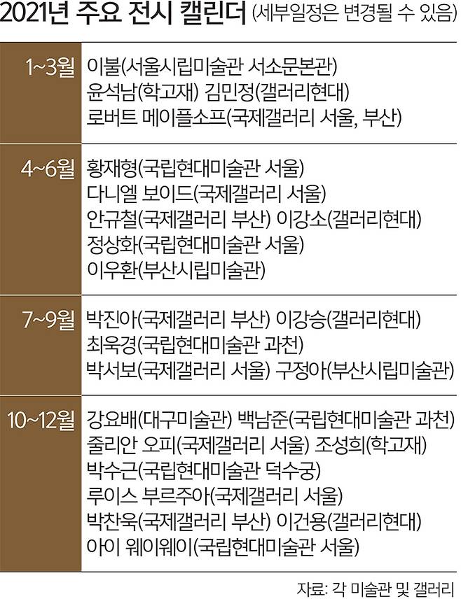 국내외 거장들의 굵직한 개인전도 풍성해 기대된다.