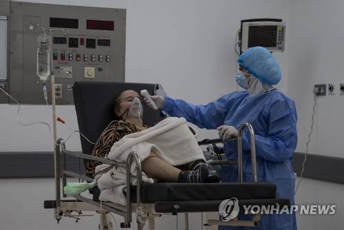 epa08924585 A nurse treats a Covid-19 patient in the Covid-19 intensive care unit at Rafic Hariri University Hospital in Beirut, Lebanese, 07 January 2021. Lebanon started a 25-day long nationwide lockdown to battle a surge in coronavirus infections during the holiday season that has challenged the country's already battered health care sector. EPA/NABIL MOUNZER