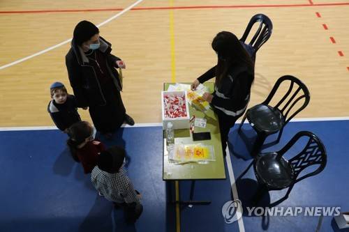 epa08924742 People are waiting in line for a COVID-19 tests in front of Israeli soldiers of the Home Front Command in a gymnasium in Jerusalem, 07 January 2021. Although Israel is one of the first countries to receive vaccines and has so far vaccinated one and a half million citizens, the rate of infection of the virus is rising drastically and Israel will enter a full closure of two weeks EPA/ABIR SULTAN