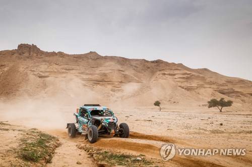 epa08924815 A handout photo made available by ASO of Lourenco Rosa and Joaquim Dias of Portugal, Can-Am, South Racing Can-Am, in action during the 5th stage of the Dakar 2021 between Riyadh and Buraydah, in Saudi Arabia on January 7, 2021. EPA/Frederic Le Floch HANDOUT via ASO SHUTTERSTOCK OUT HANDOUT EDITORIAL USE ONLY/NO SALES/NO ARCHIVES