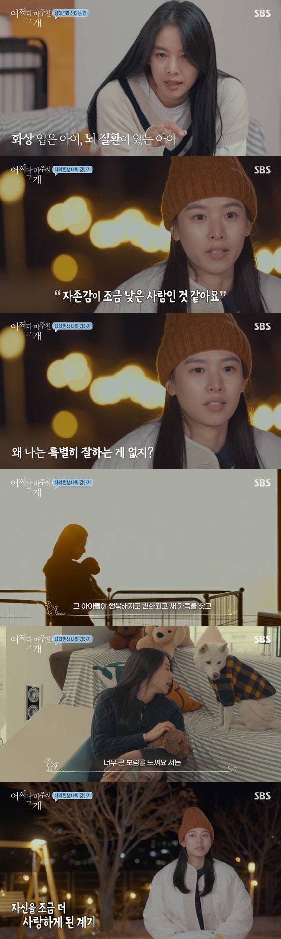 자신들의 사랑으로 하루가 다르게 변화하는 유기견들을 보며 집사들의 마음도 깊어져만 가는 '어쩌개 하우스'의 세 번째 밤. 조윤희는 제작진과의 인터뷰를 통해 이때까지 공개하지 않았던 속마음과 37개월 딸 로아의 이야기를 꺼냈다.