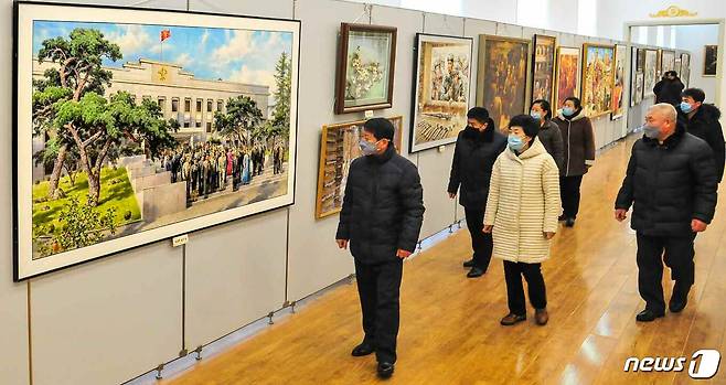 (평양 노동신문=뉴스1) = 북한 노동당 기관지 노동신문은 8일 조선미술박물관에서 각종 전시회가 진행되고 있다고 밝혔다. 신문은 "지금 조선미술박물관에서는 당 제8차 대회 기념 중앙 사진 및 도서·미술 전람회가 진행되고 있다"라며 "전람회장에는 불후의 고전적 노작들과 위대성 도서를 비롯한 각종 도서 그리고 위대한 수령님과 위대한 장군님을 형상한 미술 작품들과 다양한 주제의 미술 작품들이 전시되어 있다"라고 보도했다.