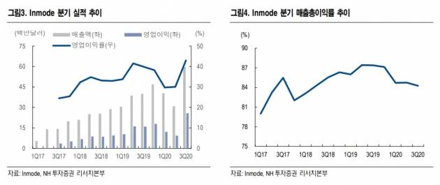 NH투자증권은 8일 미국 인모드에 대해 올해 중국에서 미용(에스테틱) 의료기기 매출이 본격화되면서 실적이 고성장할 것이라고 전망했다. 투자의견과 목표주가는 제시하지 않았다.