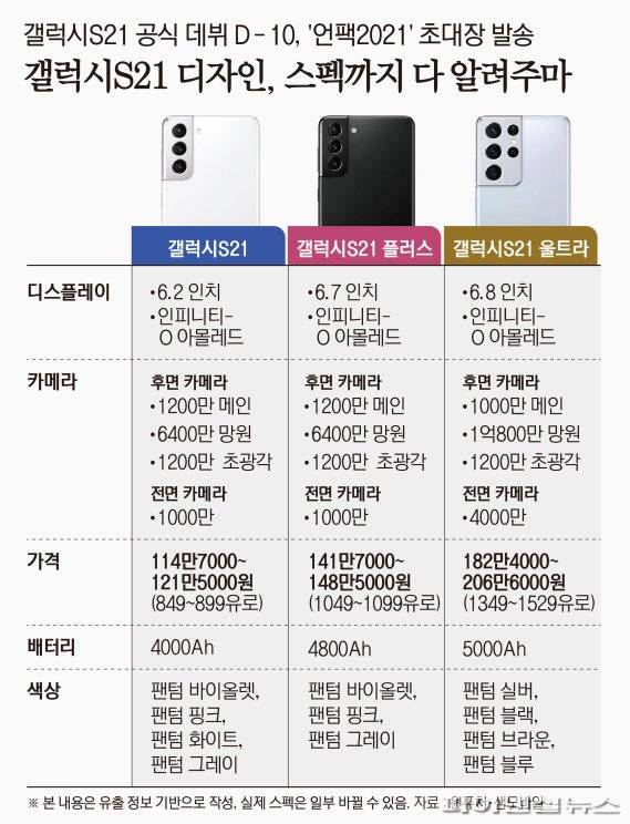 특히 아이폰12를 앞세운 애플의 성장세를 신제품인 '갤럭시S21'을 조기 출시해 완화한다는 전략이다. 삼성전자는 오는 15일 갤럭시 언팩 행사를 통해 플래그십 스마트폰 '갤럭시S21'을 공개한 후 바로 사전 예약판매에 들어간다. 공식 출시일은 이달 29일이다.