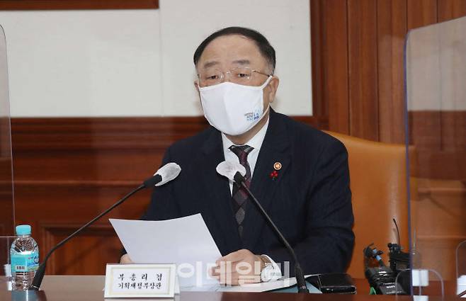 [이데일리 김태형 기자] 홍남기 부총리 겸 기획재정부 장관이 8일 오전 서울 종로구 정부서울청사에서 열린 제2차 혁신성장 BIG3 추진회의에 참석해 모두발언을 하고 있다.
