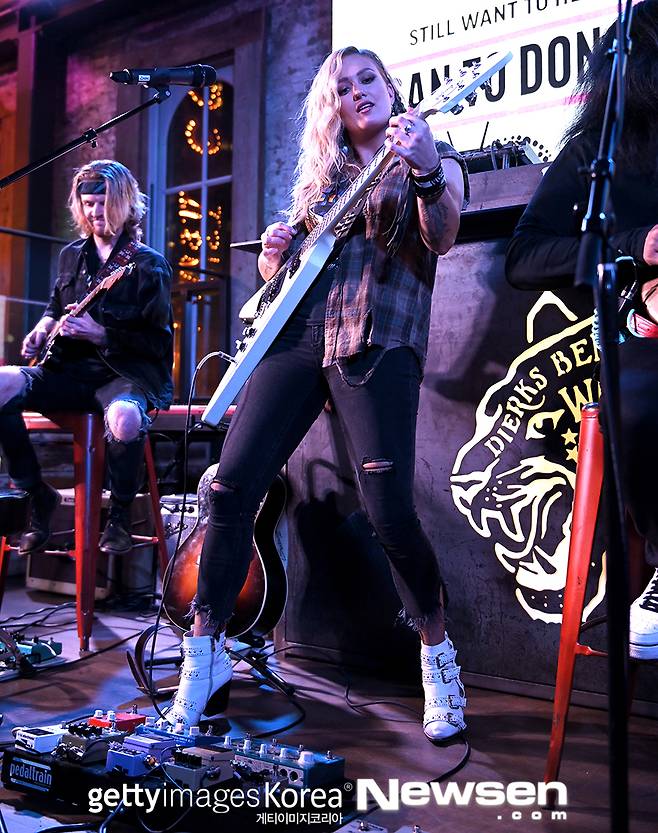 매건 패트릭이 1월 5일(현지시간) 미국 테네시 주 내슈빌의 디크스 벤틀리의 위스키 로우에서 열린 '위스키 로우 2번가 릴리프 콘서트'에서 공연하고 있다.