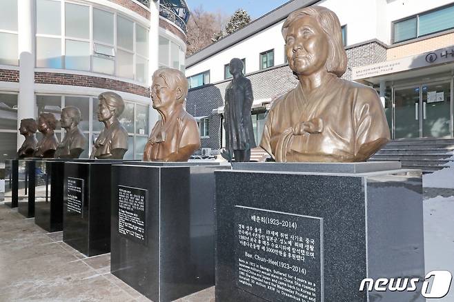 사진은 경기도 광주시 퇴촌면 나눔의 집에 세워져 있는 고(故) 배춘희 할머니와 세상을 떠난 할머니들의 흉상. 2021.1.8/뉴스1