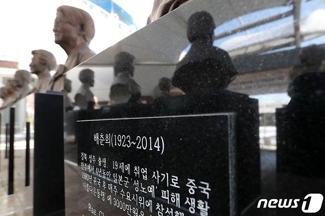 사진은 경기도 광주시 퇴촌면 나눔의 집에 세워져 있는 고(故) 배춘희 할머니와 세상을 떠난 할머니들의 흉상. 2021.1.8/뉴스1