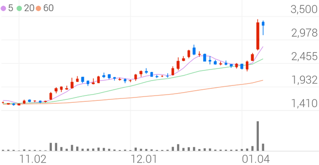 전일 대비 2.53% 상승한 3,445원에 거래되고 있다.