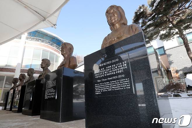 사진은 경기도 광주시 퇴촌면 나눔의 집에 세워져 있는 고(故) 배춘희 할머니와 세상을 떠난 할머니들의 흉상. 2021.1.8/뉴스1