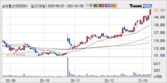 삼성물산, 장시작 후 꾸준히 올라 +5.17%.. 이 시각 거래량 150만1377주