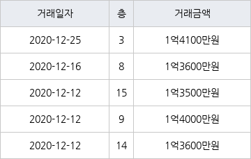 지난 2020년 12월 25일 같은 면적형인 3층 물건이 1억4100만원에 실거래된 것과 비교해 같은 가격이다.