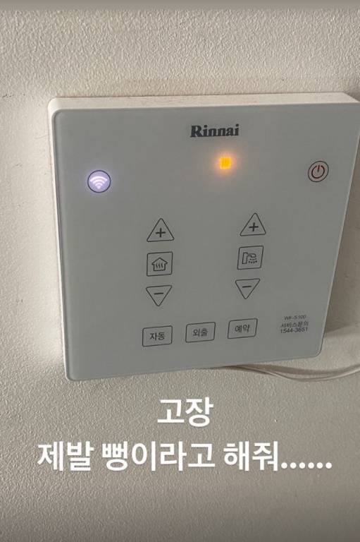 윤혜진은 8일 자신의 인스타그램 스토리를 통해 "고장 제발 뻥이라고 해줘...."라는 글과 함께 보일러 '고장' 표시가 뜬 사진을 게재했다.