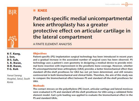 한편 연세사랑병원은 지난 2018년 1월 ‘Bone & Joint Research’ 에 이 수술법과 관련한 연구결과를 게재해 “기존 부분치환술 인공관절 보다 환자 맞춤형 부분 인공관절을 사용했을 때 수술 후 반대편 하중이 줄어들 수 있다”는 내용을 증명한 바 있다.