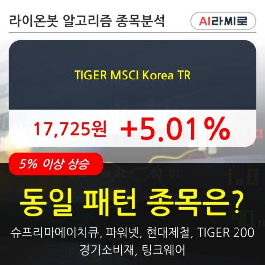 TIGER MSCI Korea TR, 장시작 후 꾸준히 올라 +5.01%.. 이 시각 27만1190주 거래
