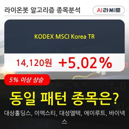 KODEX MSCI Korea TR, 장시작 후 꾸준히 올라 +5.02%.. 최근 주가 상승흐름 유지