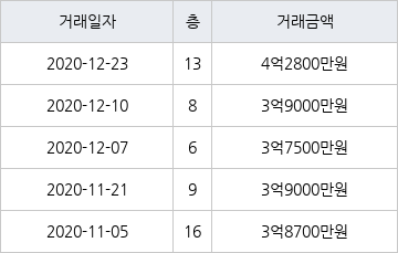 인천 연수동 연수우성1차 101㎡ 4억2800만원에 거래