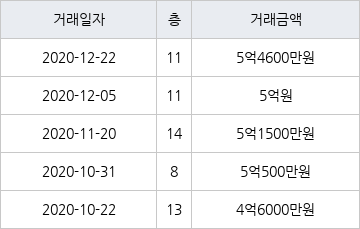 지난 2020년 12월 22일 같은 면적형인 11층 물건이 5억4600만원에 실거래된 것과 비교해 같은 가격이다.