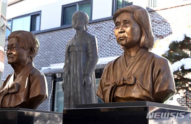 [광주(경기)=뉴시스] 김종택기자 = 위안부 피해 할머니들이 일본 정부를 상대로 제기한 손해배상 청구 소송 1심에서 승소 판결이 내려진 8일 오후 경기도 광주시 나눔의집에 위안부 피해 할머니들의 흉상이 세워져 있다. 2021.01.08.