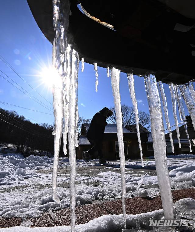 [광주(경기)=뉴시스] 김종택기자 = 전국적으로 한파 특보가 내려진 8일 오후 경기도 광주시 퇴촌면 한 주차장에 세워진 트럭에 고드름이 매달려있다. 2021.01.08.