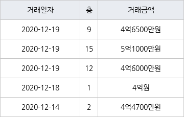 [이 기사는 조선비즈와 아티웰스가 공동으로 개발해 서비스하는 로봇 기사입니다.]국토교통부 실거래가 공개시스템에 따르면 지난 2020년 12월 19일 경기도 수원시 팔달구 화서동 화서 블루밍푸른숲아파트 12층 전용면적 59㎡형이 4억6000만원에 거래됐다.