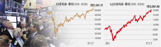 민주당이 대통령과 상원·하원 모두 장악하는 블루웨이브에 올라탄 미국 증시가 당분간 사상 최고치 탄력을 바탕으로 강세를 이어갈 수 있을 것이라는 기대감이 더욱 커지고 있다.