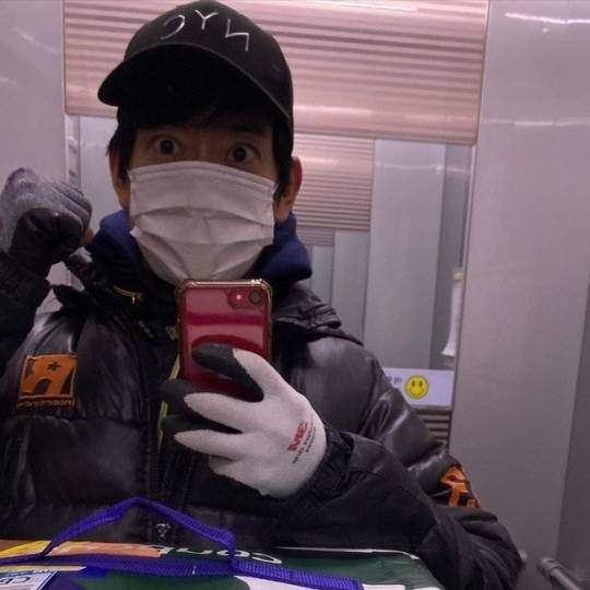 사진 속 김형준은 모자와 마스크, 장갑, 두터운 패딩을 입고 강추위에 완전무장한 모습. 주먹을 불끈 쥐고 파이팅 하는 포즈에서 그의 의지가 엿보인다.