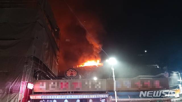 [삼척=뉴시스]김동현 기자 = 8일 오전 1시 24분께 강원 삼척시 정하동 주택에서 화재가 발생해 소방대원들이 진화에 나서고 있다. 2021.01.08. (사진=삼척소방서 제공) photo@newsis.com