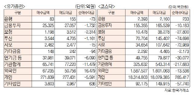 [표]유가증권·코스닥 투자주체별 매매동향(1월 8일-최종치)
