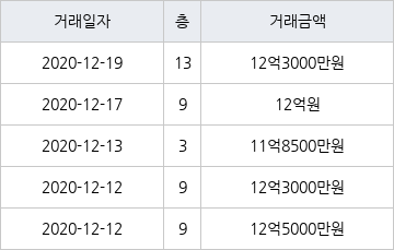 국토교통부 실거래가 공개시스템에 따르면 지난 2020년 12월 19일 서울특별시 강남구 개포동 개포대치2단지 13층 전용면적 39㎡형이 12억3000만원에 거래됐다. 해당 아파트의 동일 면적형 기준으로 역대 최고가격이다. 직전 최고가 기록은 지난 2020년 12월 12일 12억5000만원에 거래된 물건이다.