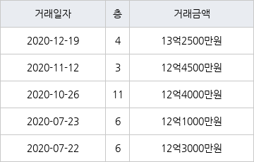 같은 기간 집계된 전용면적별 평균 실거래가격을 보면 △59㎡ 10억2113만원 △60㎡ 10억6750만원 △84㎡ 12억8400만원 △85㎡ 12억4500만원 △101㎡ 13억5300만원 △132㎡ 14억6250만원 △152㎡ 15억7875만원 등이다.