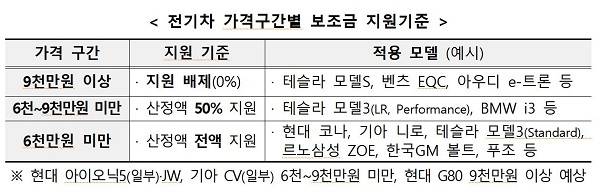 이에 따라 9000만원 이상의 전기차는 지원이 배제되고, 6000만원 미만은 산정액 전액을 지원받게된다.
