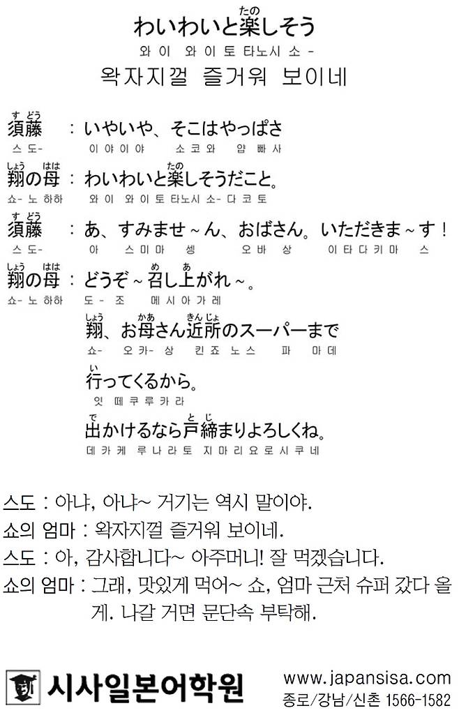 [시사일본어학원의 초단기 일본어 회화] 왁자지껄 즐거워 보이네