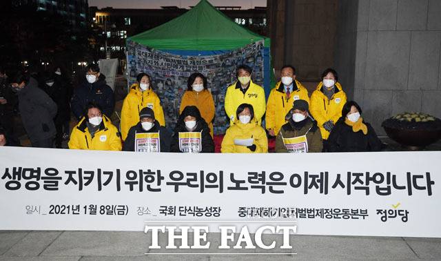 앞서 열린 국회 본회의에서 중대재해처벌법이 통과됐지만 강은미 정의당 원내대표와 류호정 의원 등은 반대 토론자로 나서 당초 정의당이 발의한 원안에 비해 수정된 부분을 지적하며 표결 불참 의사를 밝혔다.