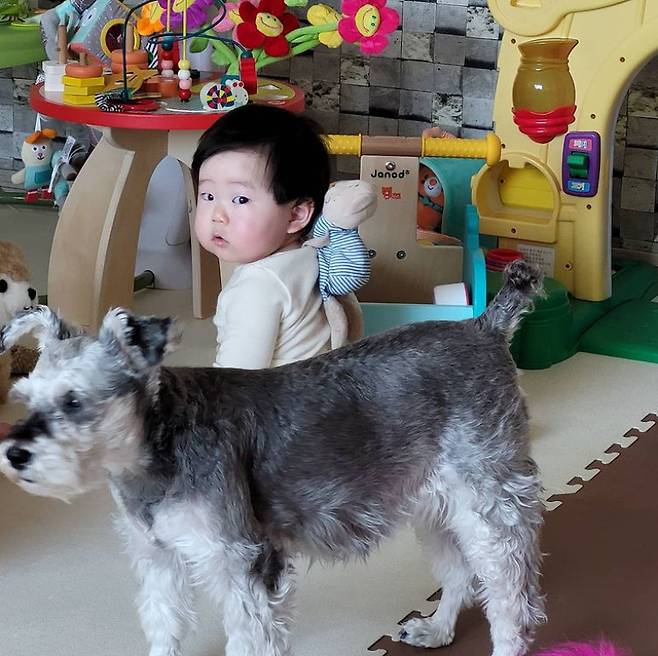 사진 속에는 인형을 업고 있는 딸 소예 양의 모습이 담겨 있다.