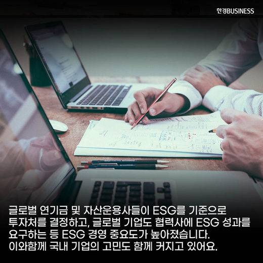 글로벌 연기금 및 자산운용사들이 ESG를 기준으로 투자처를 결정하고, 글로벌 기업도 협력사에 ESG 성과를 요구하는 등 ESG 경영 중요도가 높아졌습니다. 이와 함께 국내 기업의 고민도 함께 커지고 있어요.
