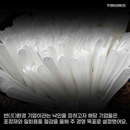 반(反)환경 기업이라는 낙인을 피하고자 해당 기업들은 포장재와 일회용품 절감을 올해 주 경영 목표로 설정했어요.