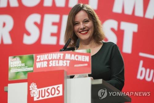 epa08926020 Newly elected Social Democratic Party (SPD) youth organization Jusos leader Jessica Rosenthal delivers a speech during an announcement of the result of a postal vote for the new leader of the youth organization of the Social Democratic Party (SPD) at the SPD?s headquarters in Berlin, Germany, 08 January 2021. Jessica Rosenthal (28) from Bonn will be the new Jusos chairwoman succeeding Kevin Kuehnert. EPA/HAYOUNG JEON