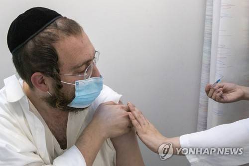 Amram Cohen receives a Pfizer COVID-19 coronavirus vaccine at a vaccination center in Jerusalem, Friday, Jan. 8, 2021. Israel has seen a surge in cases, leading authorities to tighten an already existing lockdown. Most schools and businesses will be closed starting Friday, with public gatherings restricted for a two-week period. (AP Photo/Ariel Schalit)