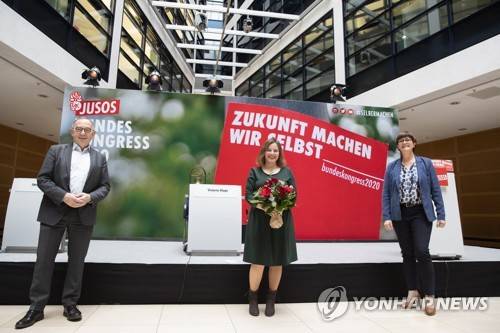 epa08926021 Co-leader of the Social Democratic Party (SPD) Norbert Walter-Borjans, Newly elected Social Democratic Party (SPD) youth organization Jusos leader Jessica Rosenthal and Co-leader of the Social Democratic Party (SPD) Saskia Esken during an announcement of the result of a postal vote for the new leader of the youth organization of the Social Democratic Party (SPD) at the SPD?s headquarters in Berlin, Germany, 08 January 2021. Jessica Rosenthal (28) from Bonn will be the new Jusos chairwoman succeeding Kevin Kuehnert. EPA/HAYOUNG JEON