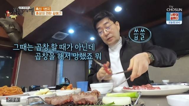 이후 손현주는 갈매기살 집에가서 고기를 구웠다. 손현주는 고기를 잘 굽는다며 "고깃집 했었다며"라고 묻는 허영만에게 "소 곱창 전문점을 했다. 89년도 그때 아는 형님이랑 같이 했던 것. 그때는 곱창이 대중적이지 않았다. 그때는 곱창 할 때가 아닌데 곱창을 해서 망했다"답했다. (사진=TV조선 '식객 허영만의 백반기행' 캡처)