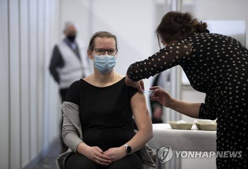 An employee of the Municipal Health Service GGD administers a Pfizer-BioNTech COVID-19 vaccine to a health care worker at a coronavirus vaccination facility in Houten, central Netherlands, Friday, Jan. 8, 2021. (AP Photo/Peter Dejong)