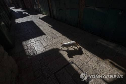 epa08926038 A cat passing in an empty alley in the Old city of Jerusalem during a full lockdown in Israel, 08 January 2021. Although Israel is one of the first countries to receive vaccines and has so far vaccinated one and a half million citizens, the rate of infection of the virus is rising drastically and Israel enter a full closure of two weeks. EPA/ATEF SAFADI