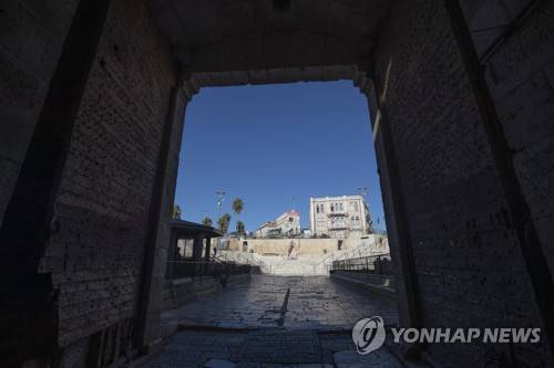 epa08926043 Damascus gate of the Old city of Jerusalem during a full lockdown in Israel, 08 January 2021. Although Israel is one of the first countries to receive vaccines and has so far vaccinated one and a half million citizens, the rate of infection of the virus is rising drastically and Israel enter a full closure of two weeks. EPA/ATEF SAFADI